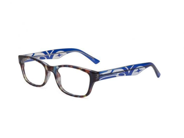 Chris Reading Glasses with Raven Design by artist Corrine Hunt.